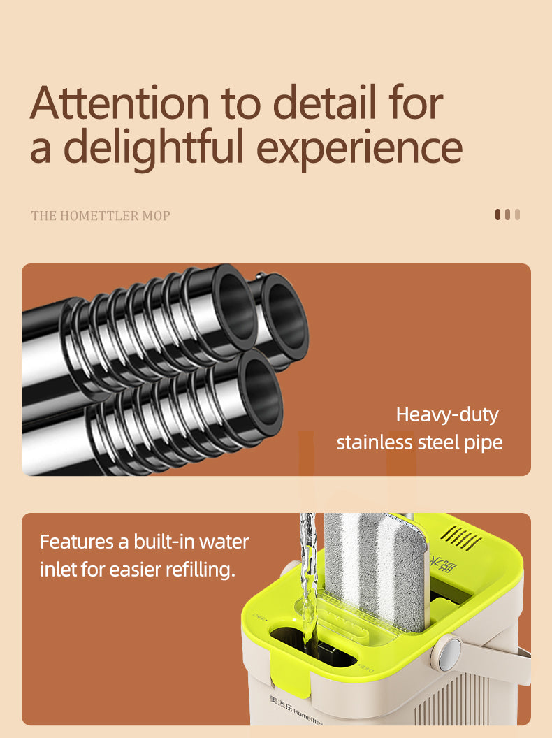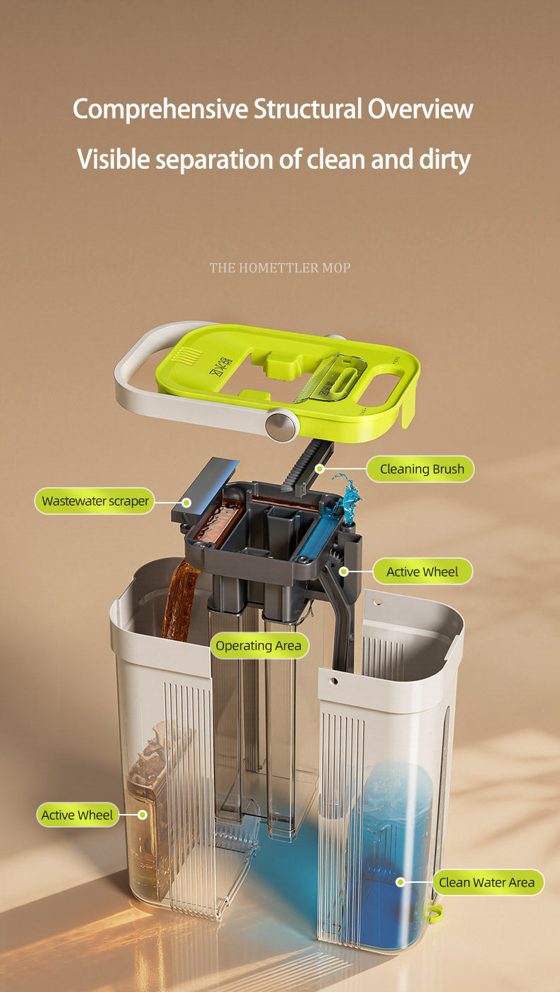 • 【3-Tank Mop Bucket】HoMettler mop and bucket set design of 3 separate chambers, one for clean water, one for dirty water, and a separate work chamber. This flat mop and bucket system separates clean and dirty water, ensuring that the flat mops are always cleaned with fresh water, keeping floors and surfaces clean every time